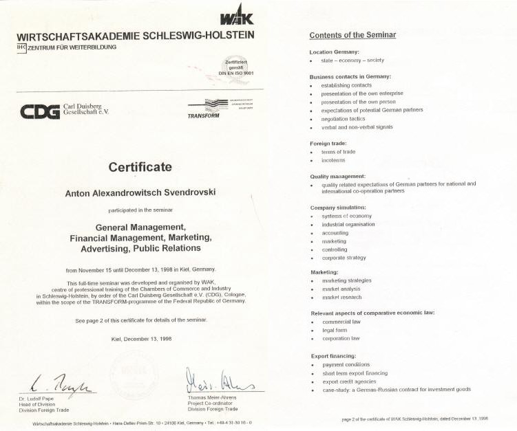 WIRTSCHAFTSAKADEMIE SCHLESWIG-HOLSTEIN (Kiel, Germany) Training Center of the Chambers of Commerce and Industry in Schleswig-Holstein TRANSFORM-programme of the Federal Republic of Germany